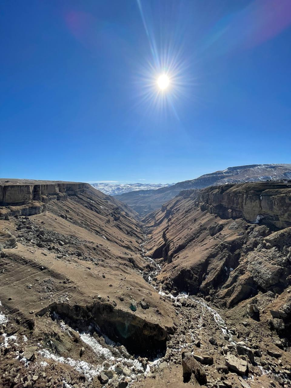 13:45 - Посещение обзорной площадки. Поселок Дубки находится в самой высокой точке Сулакского каньона. Сулакский каньон – самый глубокий каньон в Европе и один из глубочайших каньонов в мире. Располагается в долине реки Сулак. По глубине Сулакский каньон уступает лишь каньонам Котауаси и Колка в Перу и является самым глубоким каньоном в Европе. Сулакский каньон является самой популярной природной достопримечательностью Республики Дагестан. Высота каньона в среднем составляет 1300 метров, но в Дубках она достигает 1920 метров. Вы посетите главную смотровую площадку с панорамным видом. Вас обязательно поразит насыщенный бирюзовый цвет речной воды, напоминающий цвет воды тропических морских курортов. Горные птицы, летающие в каньоне ниже смотровых площадок. И все это на фоне фантастически красивых горных пейзажей.