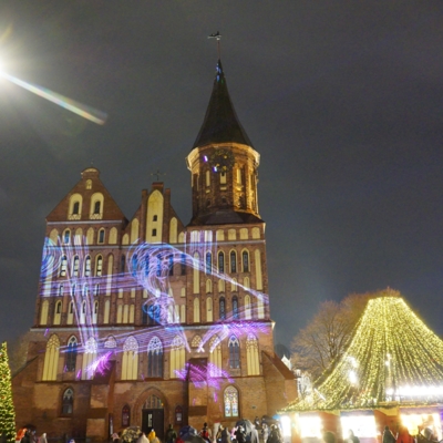 Экскурсия по острову, во время которой, вы сможете разгадать «Тайну семи мостов». А ещё вы насладитесь сказочной новогодней атмосферой Рождественской ярмарки на острове и лазерным шоу на Кафедральном соборе. Главным сюрпризом ярмарки, конечно, станет горячий напиток, который мог родиться только в этих местах. Глинтвейн "KantWein" напоминает о том, что традициям острова уже не одна сотня лет. И после этого пройдёте по Медовому мосту, сохранившемуся после войны, и окажетесь в «Рыбной деревне». Вечернее освещение в Рыбной деревне представлено архитектурной подсветкой зданий в стилях фахверк, а также вечерней иллюминацией, создающей сказочную атмосферу старого европейского города на фоне реки Преголя.