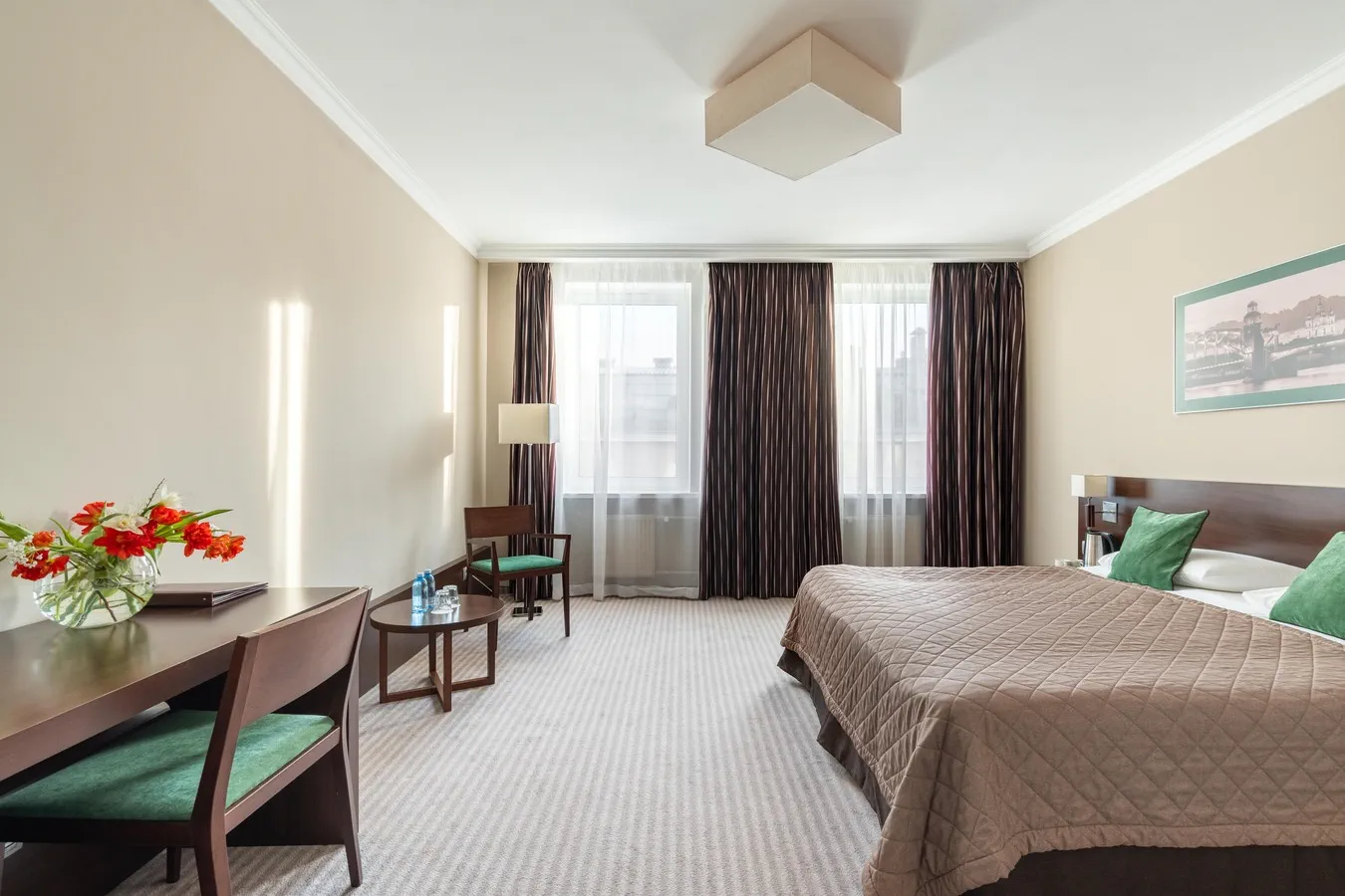Гостиница «Полюстрово» - современный гостиничный комплекс, расположенный на правом берегу реки Невы, в 10-ти минутах езды от станции метро «Площадь Ленина» и в 20-ти минутах езды от центра города. В семиэтажном здании гостиницы – 242 реновированных в 2007 году номеров. Все номера отремонтированы в соответствии с международными стандартами. Размещение: – одно-, двухместные номера с евроремонтом и всеми удобствами. В каждом номере: раздельные кровати или одна большая кровать, шкаф, стол-тумбочка с телевизором, стул, телефон, мини-бар, бесплатный доступ к сети Интернет Wi-Fi. Ванная комната оборудована душевой кабиной или ванной с импортной сантехникой и принадлежностями для ванной.