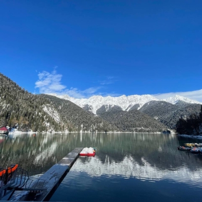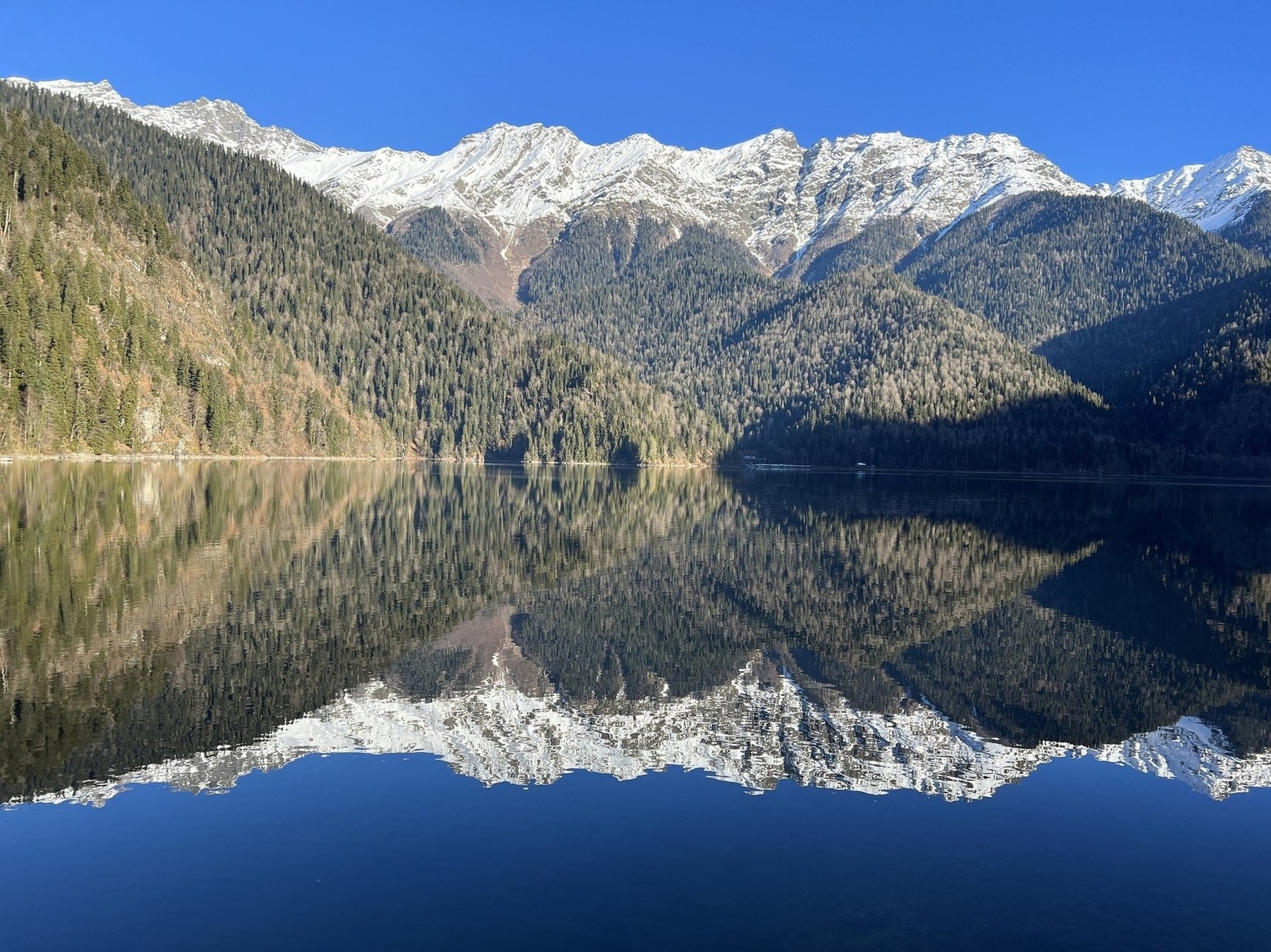 Это самое крупное озеро в Абхазии, его площадь 1,27 кв. км., длина 2,5 км., а ширина 870 метров. К тому же, это одно из самых глубоководных озёр Кавказа - его глубина достигает 116 метров, во впадинах 63 метра. Особенностью водоёма является его способность менять цвет - от изумрудного до сине-голубого. Озеро Рица является образцом прекрасных, природных пейзажей, уникальным происхождением и чистой водой. Во время пути к озеру Вы совершите несколько остановок: у водопадов Девичьи и Мужские слезы, а также у потрясающего Голубого озера.